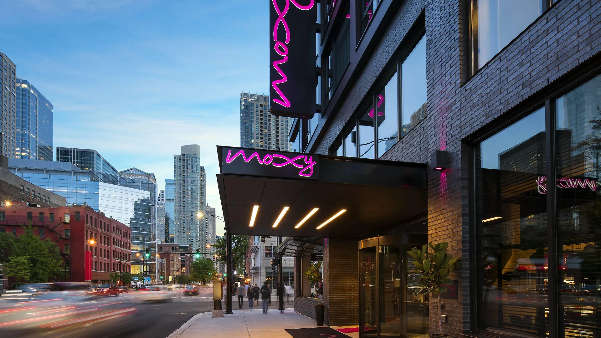 Het pand ligt in de wijk Magnificent Mile van Chicago, direct naast het metrostation Merchandise Mart. Het hotel bevindt zich op loopafstand van het Millennium park. Het Natuurbeheer Lincoln Park op 10 minuten rijafstand van de locatie is een voordeel voor de gasten van het pand. Moxy Chicago Downtown Hotel is op 20 km van de luchthaven Midway en op minuten lopen van de LaSalle & Ontario bushalte.